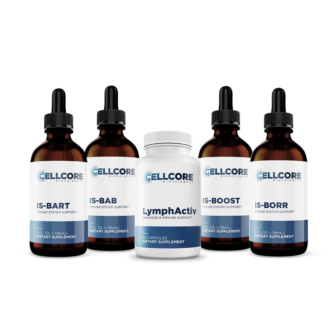 Phase 5 targets deeper infections, such as Lyme and its co-infections, with potent herbal blends in both tincture and capsule form. This phase includes IS-BAB, IS-BART, IS-BOOST, IS-BORR, and LymphActiv, and is designed to fortify the immune system, drive deeper detox, and advance the work completed in earlier phases.